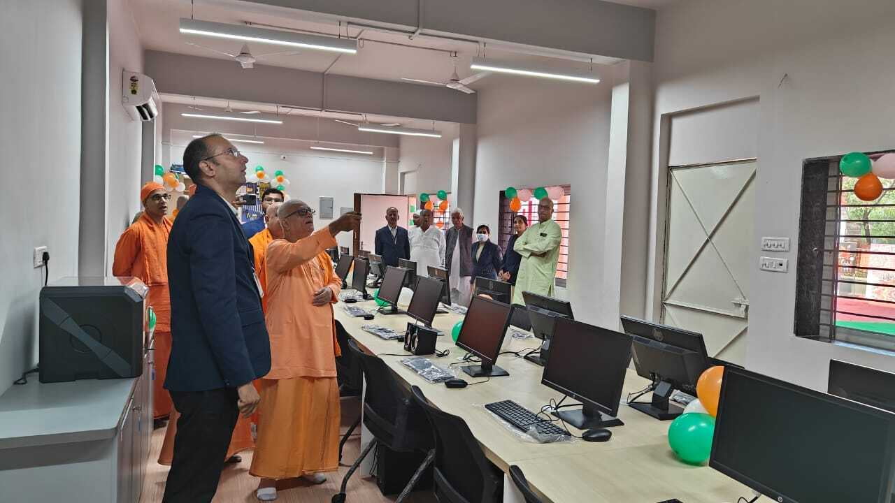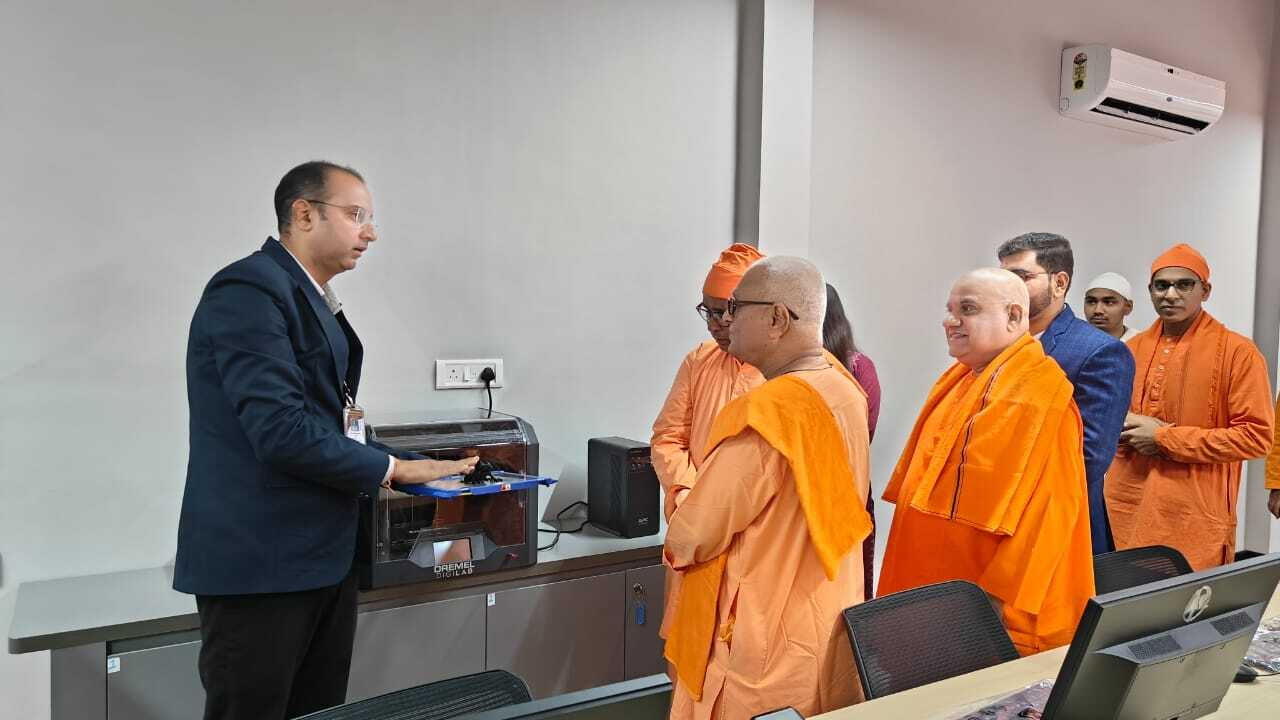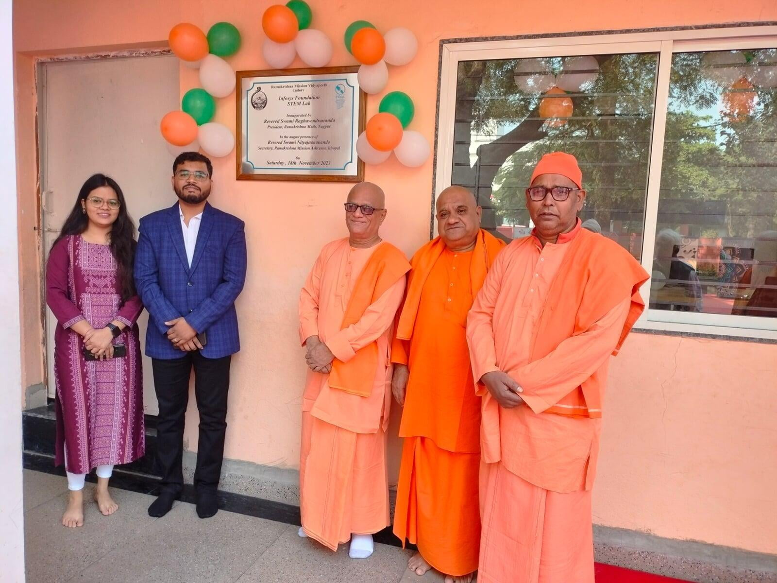 The STEM Lab at Ramakrishna Mission Vidyapeeth, Indore, sponsored by Infosys Foundation, was inaugurated by Revered Swami Raghavendranandaji Maharaj, Adhyaksha, Ramakrishna Math, Nagpur in the august presence of Revered Swami Nityajnananandaji Maharaj, Secretary, Ramakrishna Mission Ashrama, Bhopal, and Sri Pramod Ruriya from Infosys on November 18, 2023. All the dignitaries encouraged the students to take full advantage of the new lab facility so as to further their careers and, thereby, the country.