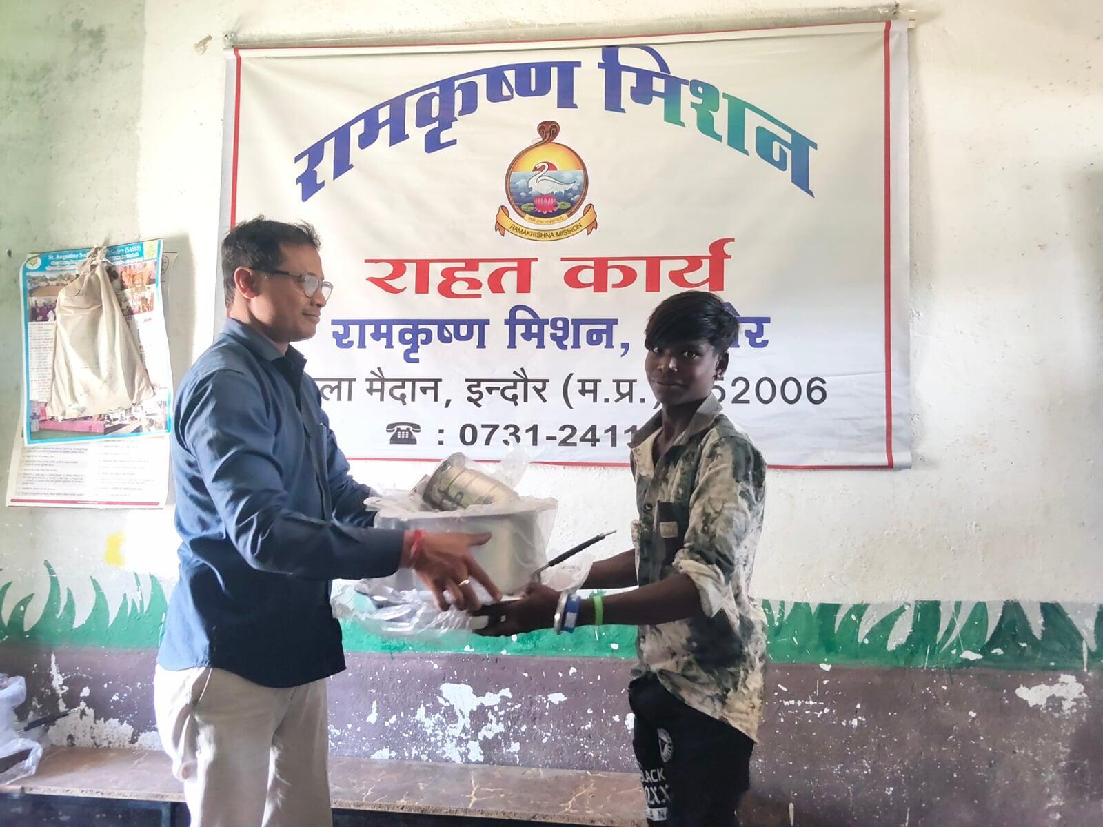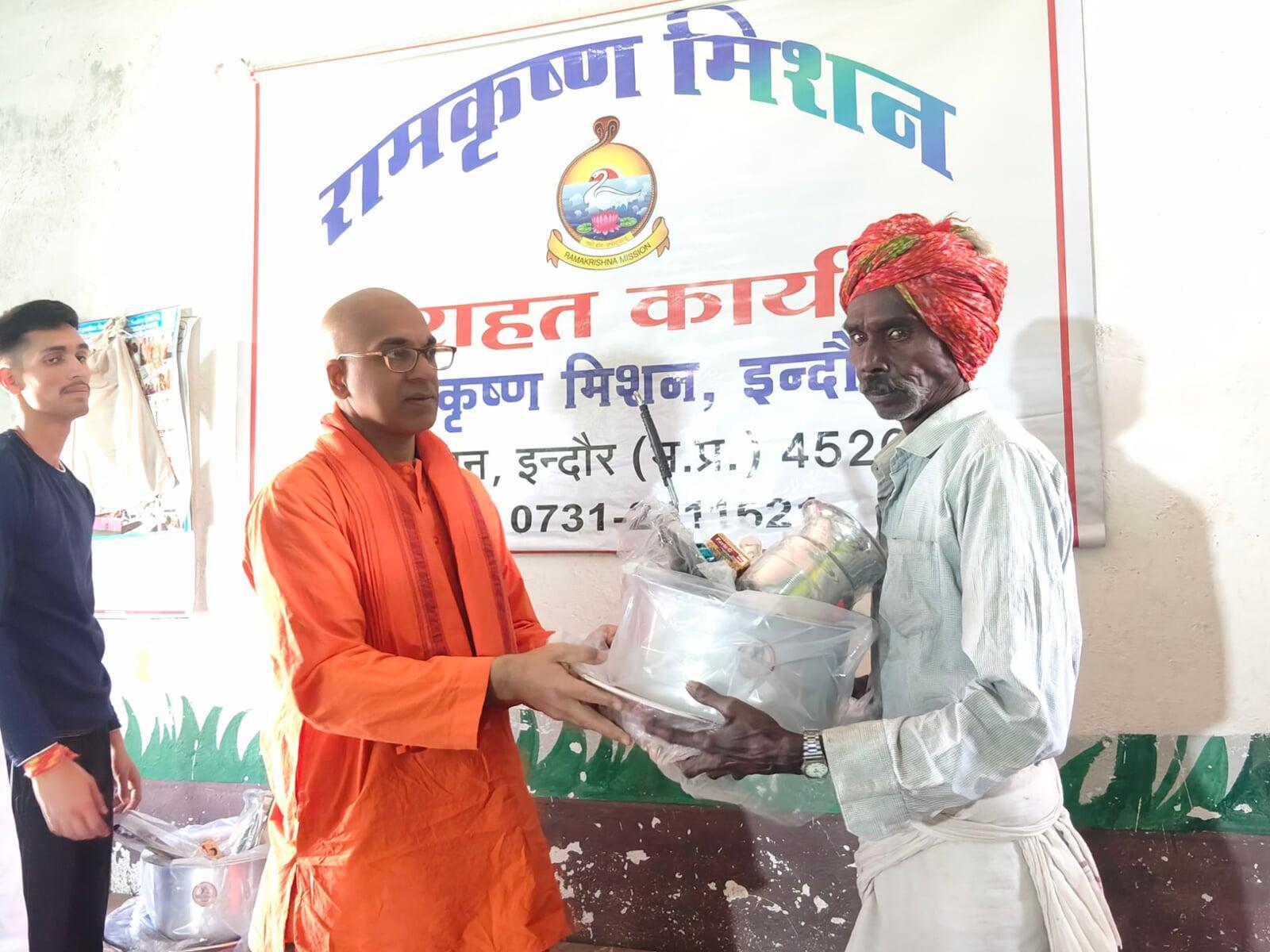 Ramakrishna Mission, Indore, conducted a distribution program for the underprivileged tribal community in the Shulpani area of Barwani district. On 5 April 2026, essential household items were provided to 51 extremely poor and needy tribal families residing in Dhajara village.