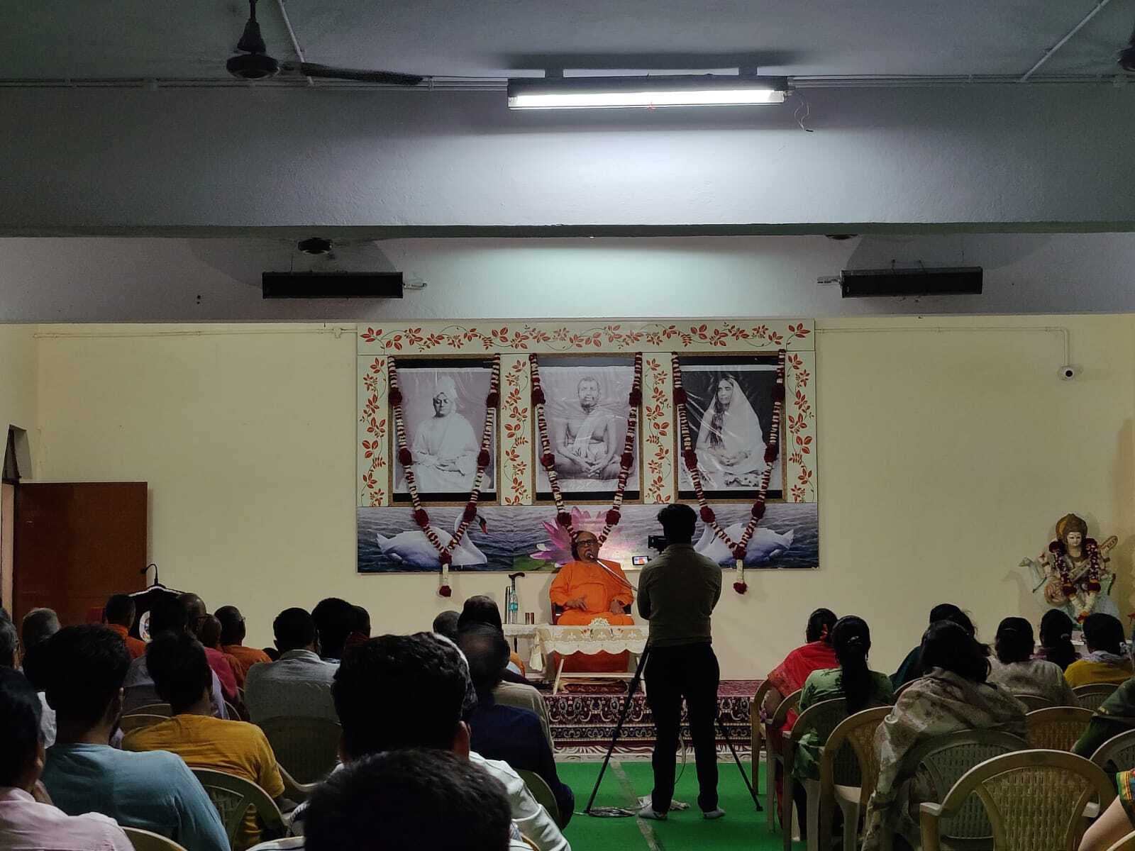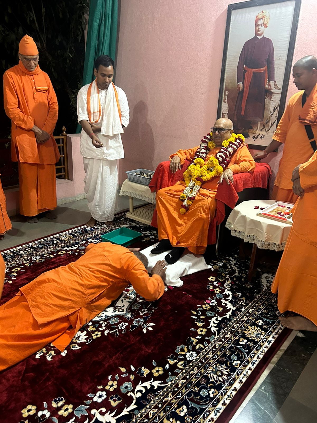 Revered Swami Girishanandaji Maharaj, Vice President, Ramakrishna Math & Ramakrishna Mission, Belur math visited Indore Ashrama and bestowed Mantra Diksha to 153 spiritual seekers on 2 April 2023. During this stay, he visited Ujjain and Omakareshwar. On 3rd April 2023, he gave benedictory address to the devotees and spiritual seekers in the Ashrama.